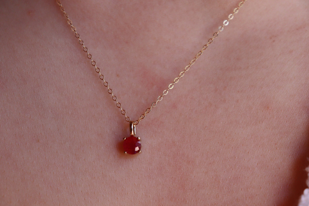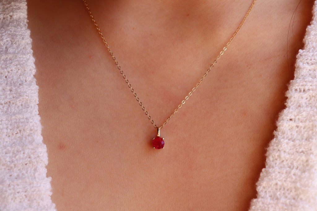 5mm lab created ruby gemstone, in 18k gold vermeil pendant setting