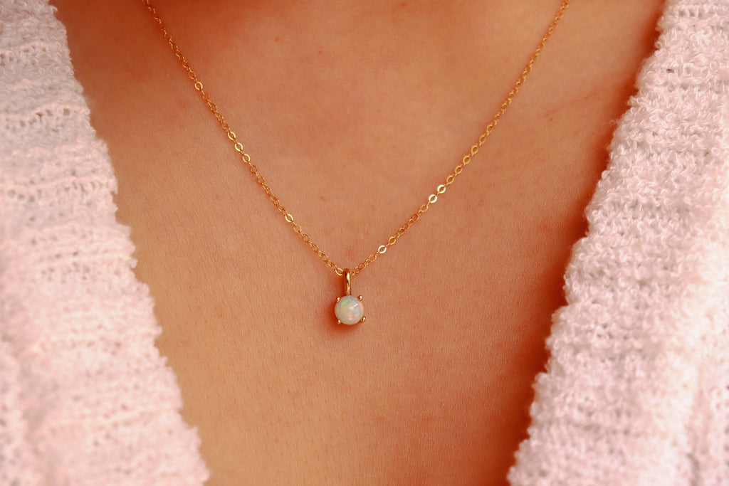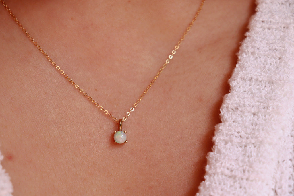 5mm natural opal gemstone, in 18k gold vermeil pendant setting